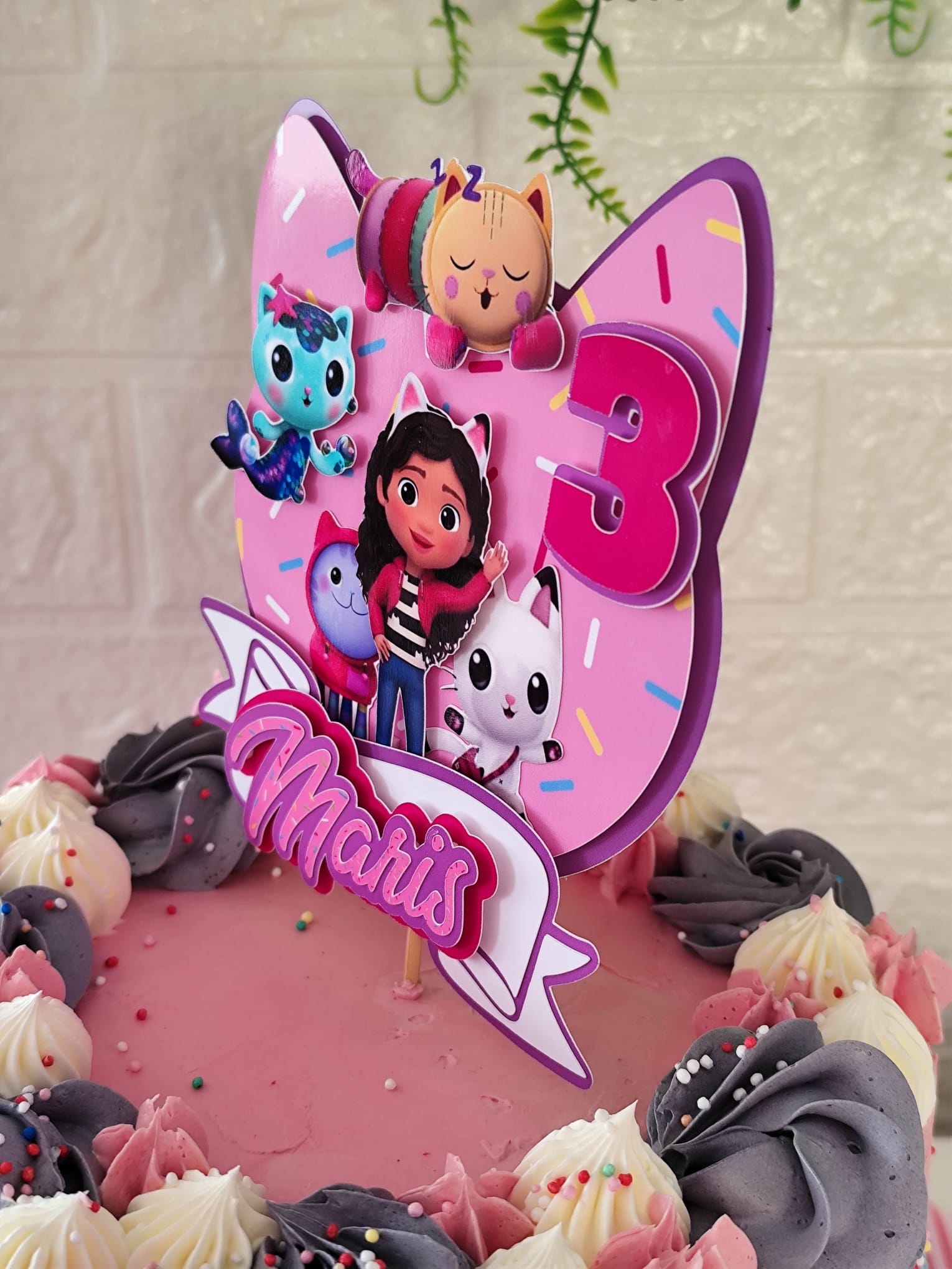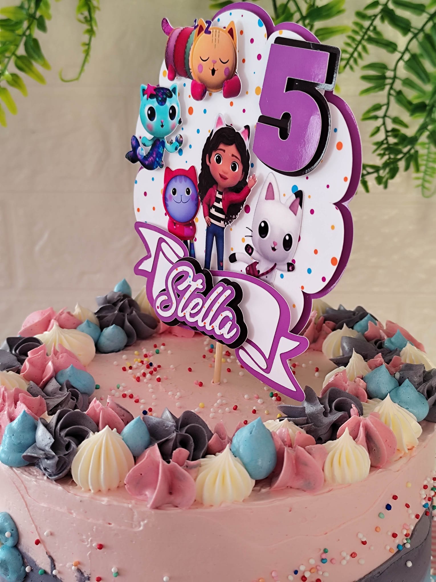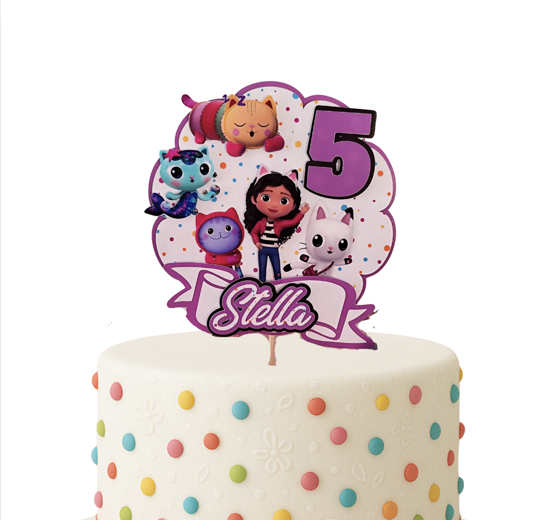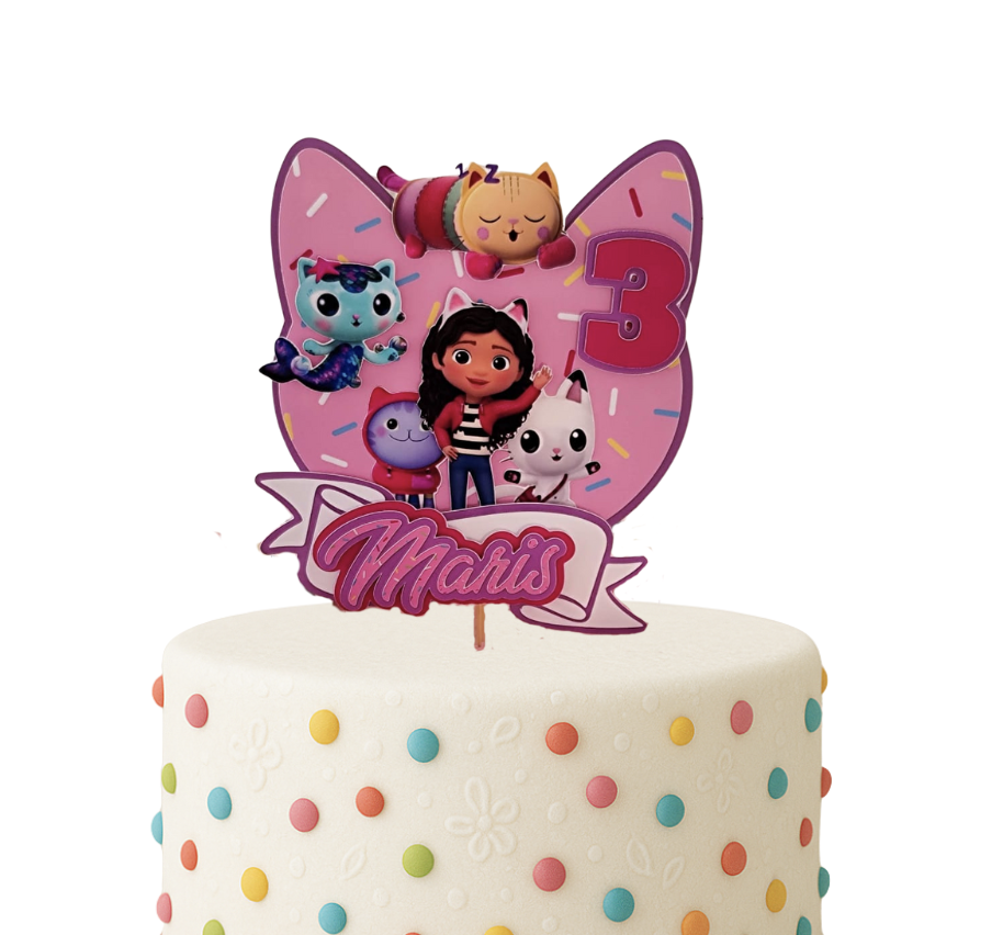 Gabby’s Dollhouse omiljeni je crtani film mnogih djevojčica i dječaka. Kombinira maštovite avanture, šarene likove i zabavu koja oduševljava mališane diljem svijeta. Naš 3D toper za tortu izrađen je upravo na tu temu – s likovima iz Gabby’s Dollhouse crtića i personaliziranim imenom djeteta. To znači da će torta vašeg djeteta biti jedinstvena, personalizirana i potpuno prilagođena proslavi.