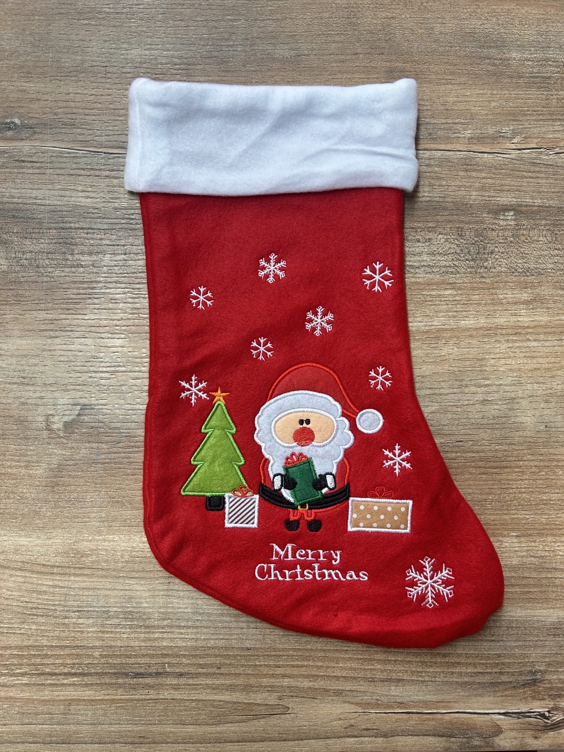 Ova prekrasna crveno-bijela čizmica izrađena je od mekanog, ugodnog materijala i ukrašena veselim motivima Djeda Božićnjaka, božićnog drvca, poklona i pahuljica. Savršena je za male i velike koji s nestrpljenjem očekuju dolazak Svetog Nikole i žele svoj poklon pronaći u posebnoj, samo svojoj čizmici. 🎄